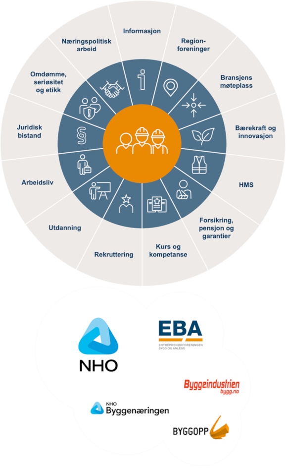 Vi er et viktig bindeledd mellom næringen, kunder og det offentlige. EBA skal arbeide for forutsigbare rammevilkår som fremmer bærekraft og lønnsomhet i prosjektene. Gjennom aktiv deling og kompetansehevende arbeid vil vi legge til rette for at næringen kan ha en lønnsom grønn vekst. Samtidtidig vil EBA, gjennom å synliggjøre næringens arbeid i praksis, fortsette å bygge næringens omdømme, attraktivitet og posisjon.
