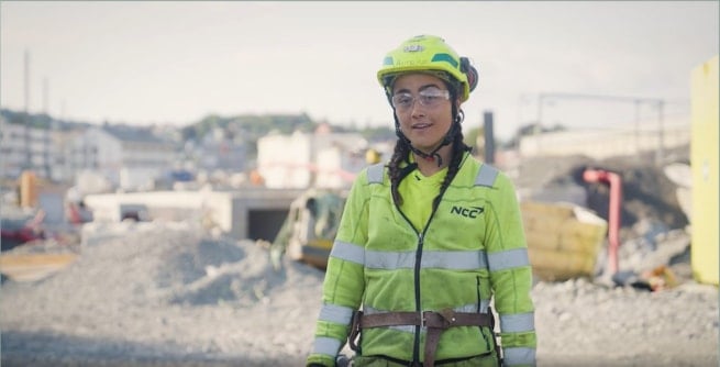 Andrine er 22 år og har fagbrev som betongfagarbeider. På videregående gikk hun TAF som står for Teknisk, allmennfaglig utdanning (TAF). Hun har jobbet i NCC siden hun var 16 år og jobber enda deltid ved siden av byggingeniørstudiet på høyskolen på Vestlandet.